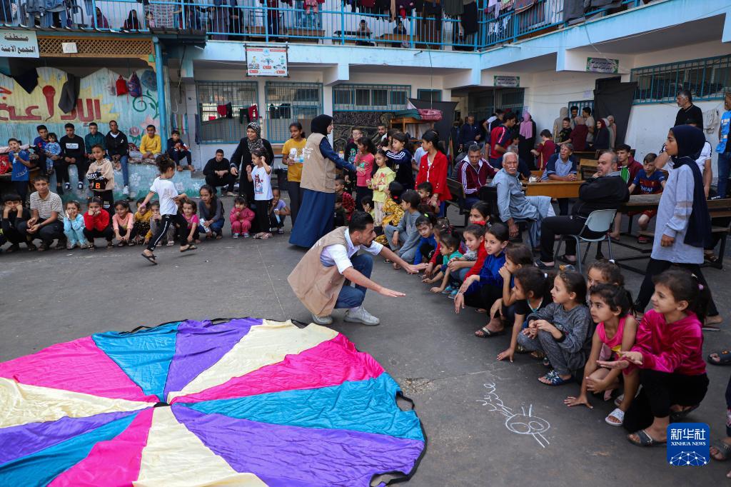 當日,在加沙地帶南部城市汗尤尼斯的一所聯(lián)合國近東巴勒斯坦難民救濟和工程處附屬學(xué)校內,當地志愿者組織多種活動(dòng),關(guān)愛(ài)流離失所的兒童,撫慰戰事創(chuàng )傷。新一輪巴以沖突爆發(fā)一個(gè)月來(lái),加沙地帶已有超過(guò)1萬(wàn)人死亡,其中大約40%是兒童。