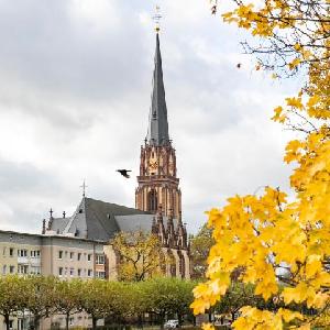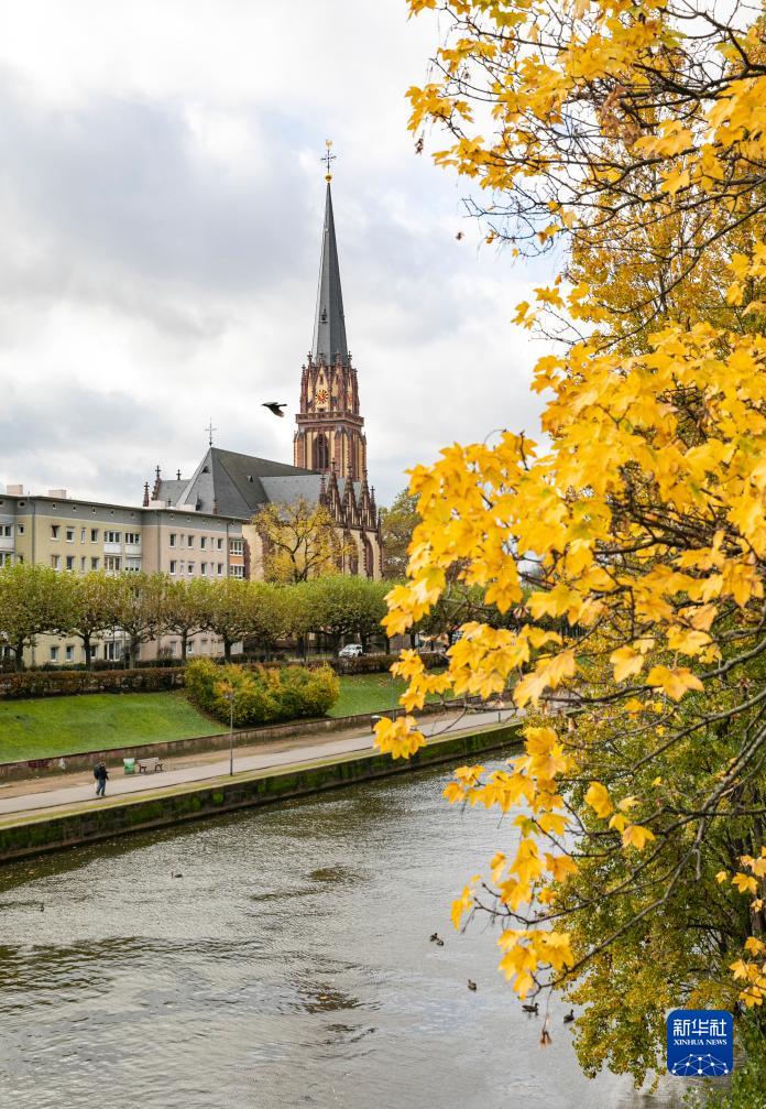 這是11月8日在德國法蘭克福拍攝的美因河畔秋日景象。
