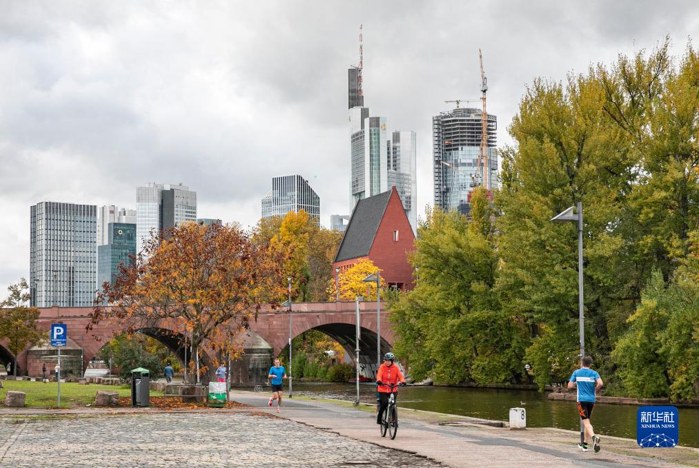 這是11月8日在德國法蘭克福拍攝的美因河畔秋日景象。