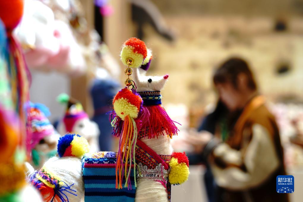 11月6日在第六屆進(jìn)博會(huì )消費品展區拍攝的秘魯羊駝手工藝品。