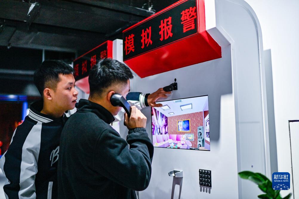 11月9日,觀(guān)眾在長(cháng)春市消防科普教育基地體驗模擬報警器。