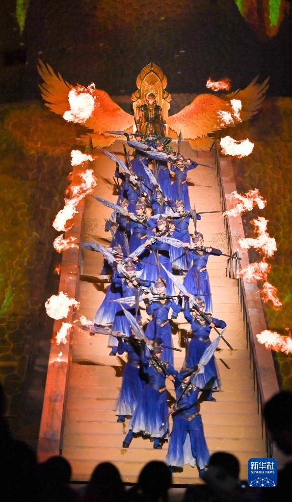 在約特干故城,演員在表演“傳絲魅影”(11月7日攝)。