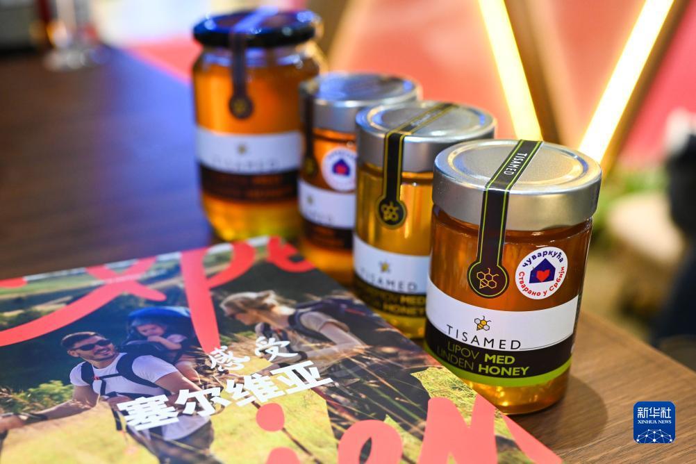 11月8日在第六屆進(jìn)博會(huì )上拍攝的塞爾維亞蜂蜜產(chǎn)品。