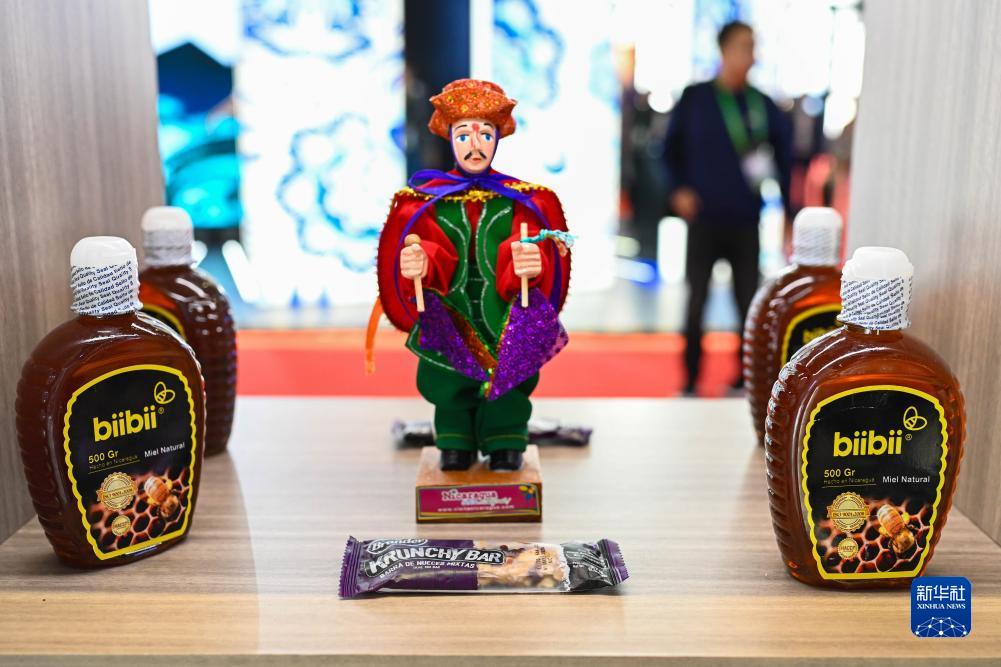 11月8日在第六屆進(jìn)博會(huì )上拍攝的尼加拉瓜蜂蜜產(chǎn)品。