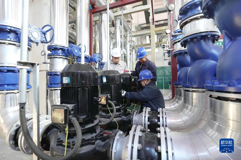 11月9日,國網(wǎng)辛集市供電公司工人檢修供熱電力設備。