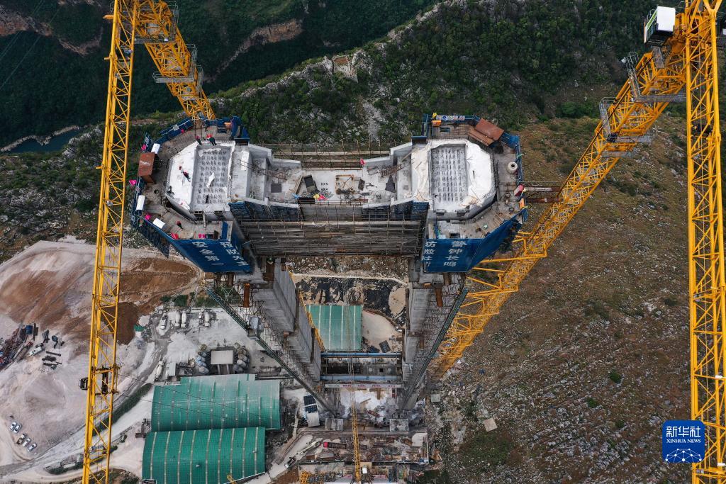 這是11月8日拍攝的貴州六安高速花江峽谷大橋建設現場(chǎng)(無(wú)人機照片)。