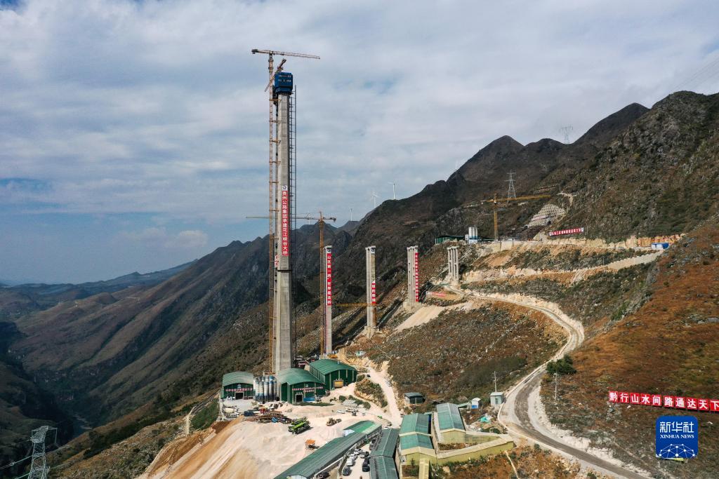 這是11月8日拍攝的貴州六安高速花江峽谷大橋建設現場(chǎng)(無(wú)人機照片)。