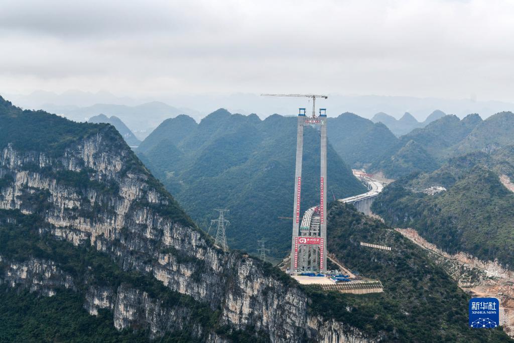 這是11月8日拍攝的貴州六安高速花江峽谷大橋建設現場(chǎng)。