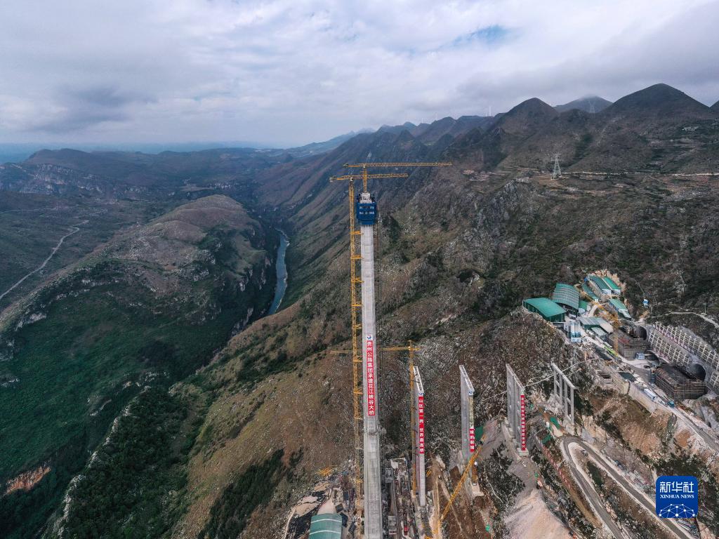這是11月8日拍攝的貴州六安高速花江峽谷大橋建設現場(chǎng)(無(wú)人機照片)。