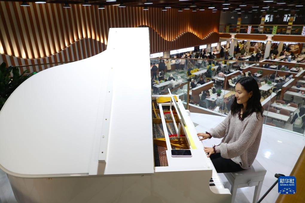 11月9日,在沈陽(yáng)農業(yè)大學(xué)三食堂,學(xué)生在彈鋼琴。鋼琴愛(ài)好者可以預約時(shí)間來(lái)食堂為同學(xué)們演奏。