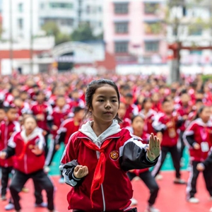 11月9日,黃平民族中學(xué)的學(xué)生在大課間做活動(dòng)。