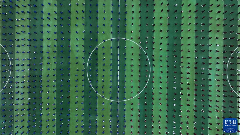 11月9日,黃平民族中學(xué)的學(xué)生在大課間做活動(dòng)(無(wú)人機照片)。
