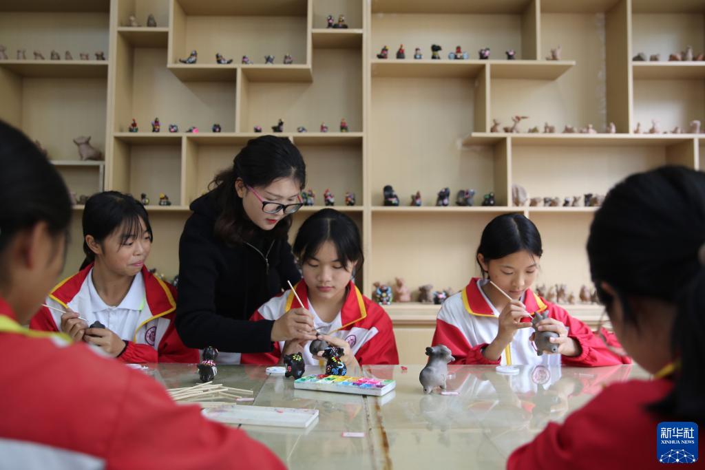 11月9日,黃平縣第二中學(xué)的學(xué)生在參加非遺社團活動(dòng)。