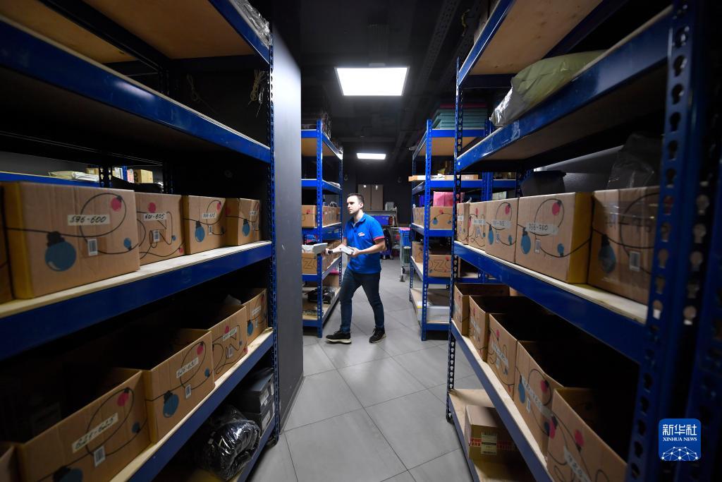 11月8日,在俄羅斯首都莫斯科,工作人員在一家電商平臺倉庫內分揀貨物。