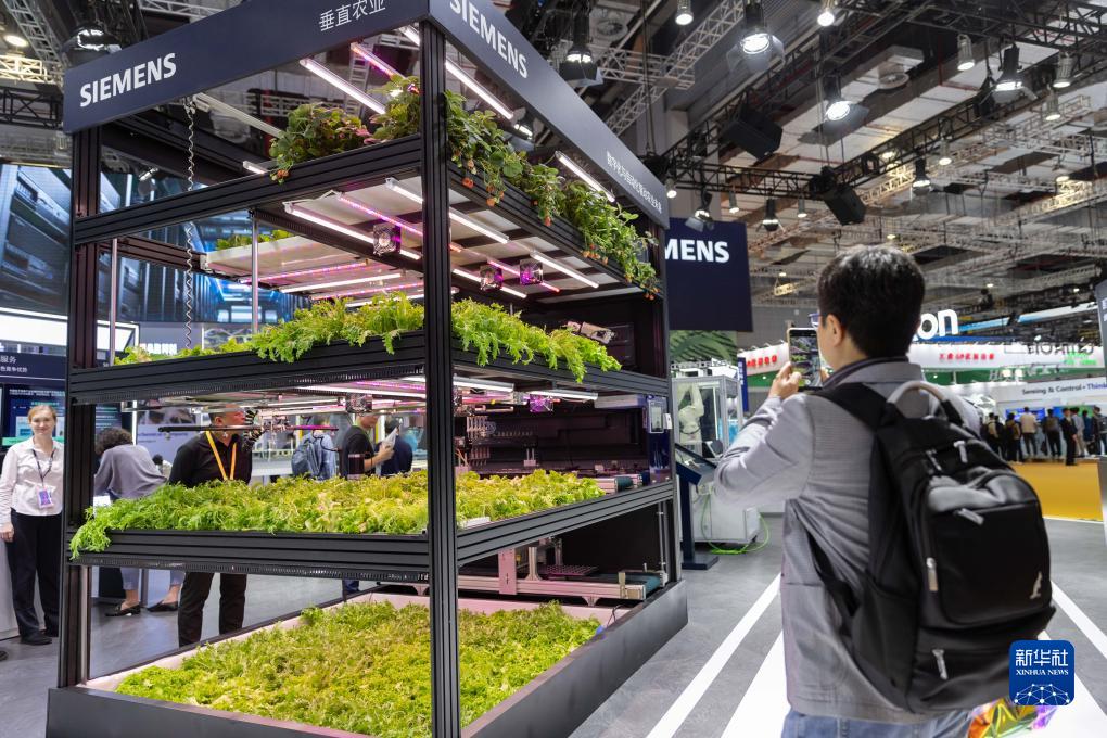 11月9日,觀(guān)眾在西門(mén)子展位拍攝智慧植物工廠(chǎng)。