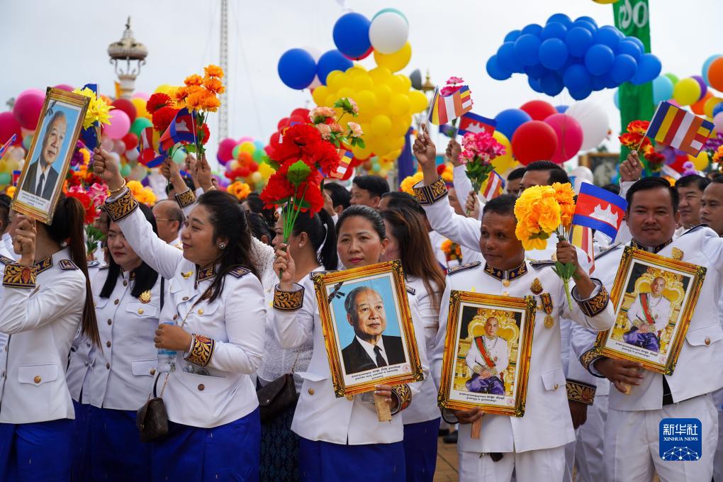 11月9日,人們在柬埔寨首都金邊參加獨立日慶?;顒?dòng)。