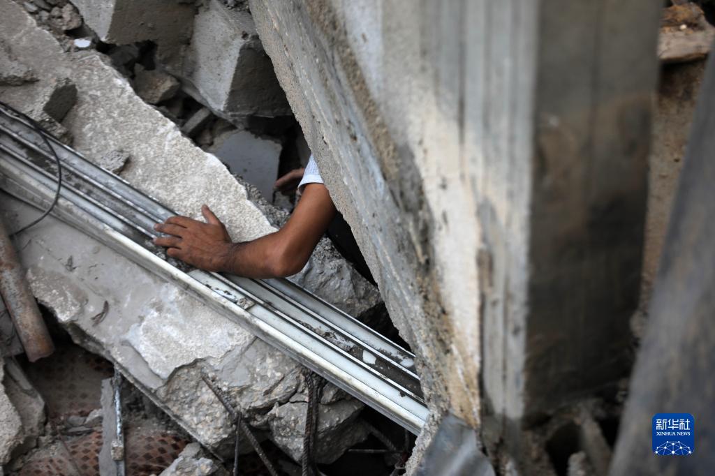 11月9日,在加沙地帶南部城市汗尤尼斯,人們在遭以色列襲擊后的建筑廢墟中實(shí)施救援。