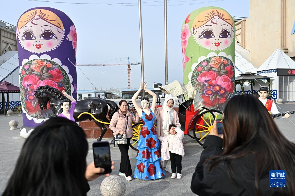 11月8日,游客在中哈霍爾果斯國際邊境合作中心哈方區域打卡拍照。