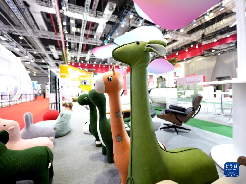 11月5日在第六屆進(jìn)博會(huì )消費品展區拍攝的新加坡卡通家居產(chǎn)品。