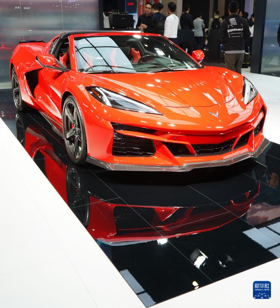 11月10日在第六屆進(jìn)博會(huì )汽車(chē)展區拍攝的雪佛蘭科爾維特E-Ray混動(dòng)跑車(chē)。
