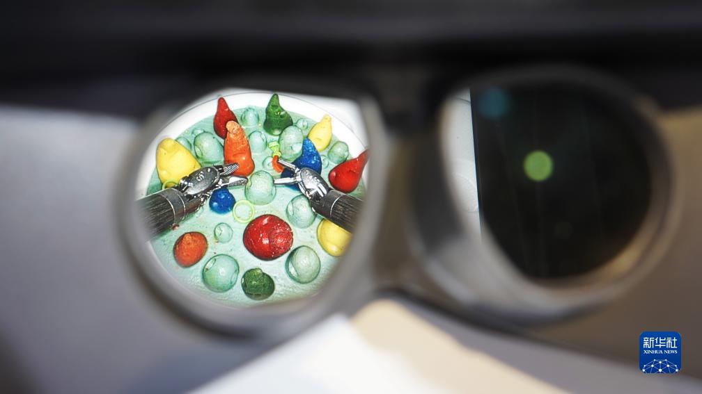 11月7日在第六屆進(jìn)博會(huì )醫療器械及醫藥保健展區復星健康展臺拍攝的國產(chǎn)達芬奇手術(shù)機器人模擬手術(shù)視角。