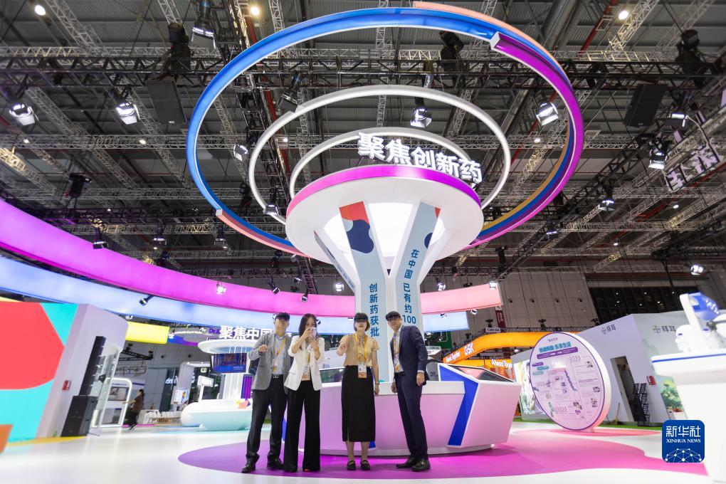 11月5日,在第六屆進(jìn)博會(huì )醫療器械及醫藥保健展區諾華展位,參展人員佩戴VR設備體驗產(chǎn)品。