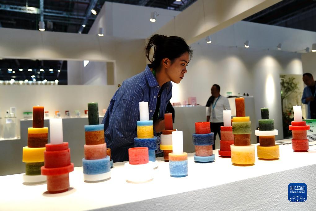11月6日,在第六屆進(jìn)博會(huì )消費品展區,觀(guān)眾觀(guān)看比利時(shí)蠟燭。