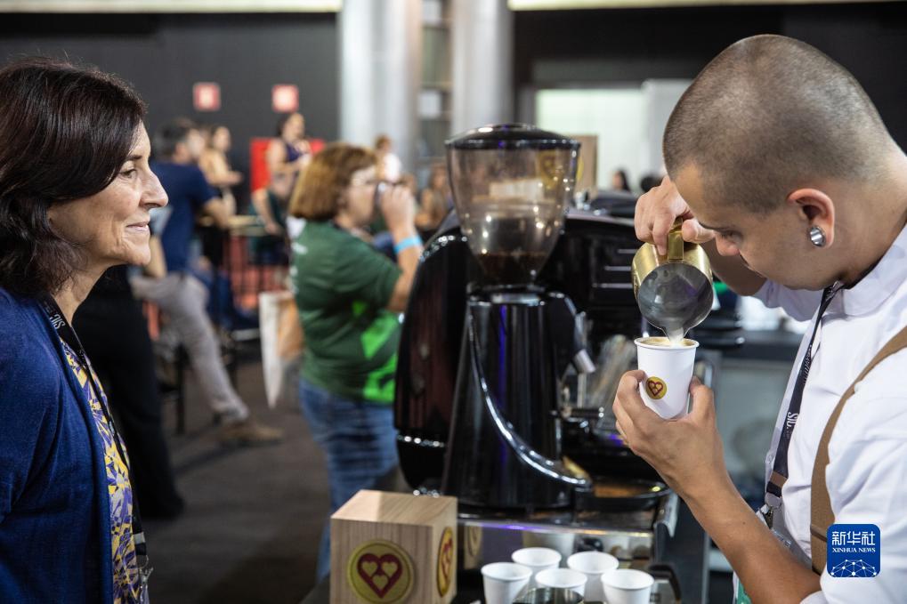 11月9日,咖啡師在巴西貝洛奧里藏特舉行的咖啡周上為參觀(guān)者制作咖啡。