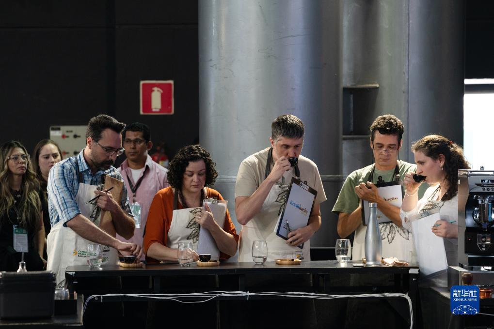 11月9日,評委在巴西貝洛奧里藏特舉行的咖啡周上品鑒咖啡。