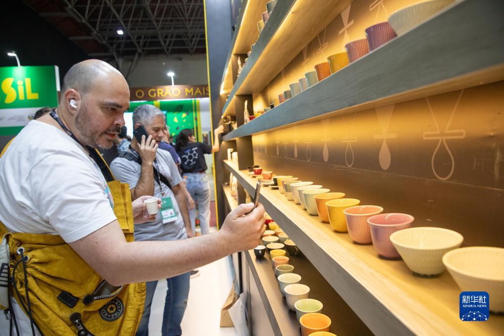 11月9日,在巴西貝洛奧里藏特的咖啡周上,參觀(guān)者拍攝咖啡杯。