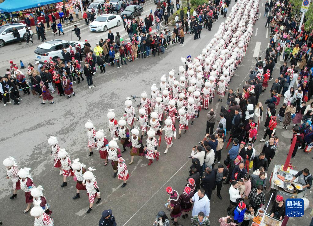 11月10日,群眾在蘆笙節上巡游(無(wú)人機照片)。
