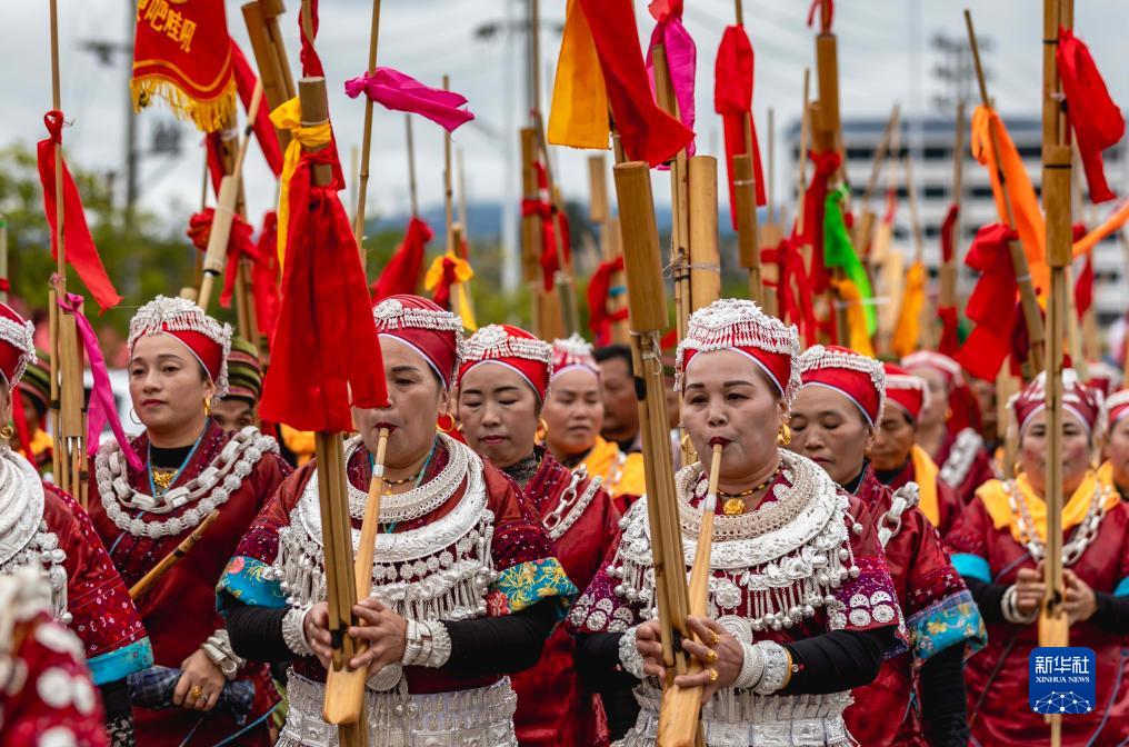 當日,貴州省黔東南苗族侗族自治州黃平縣谷隴鎮迎來(lái)蘆笙節。當地苗族群眾身著(zhù)盛裝,載歌載舞歡度節日,祈禱來(lái)年風(fēng)調雨順、五谷豐登。