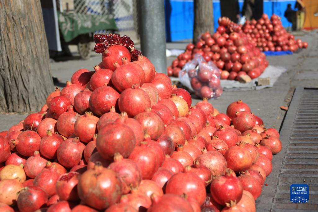 11月10日,在阿富汗首都喀布爾,一處攤位售賣(mài)產(chǎn)自阿富汗南部坎大哈省的石榴。