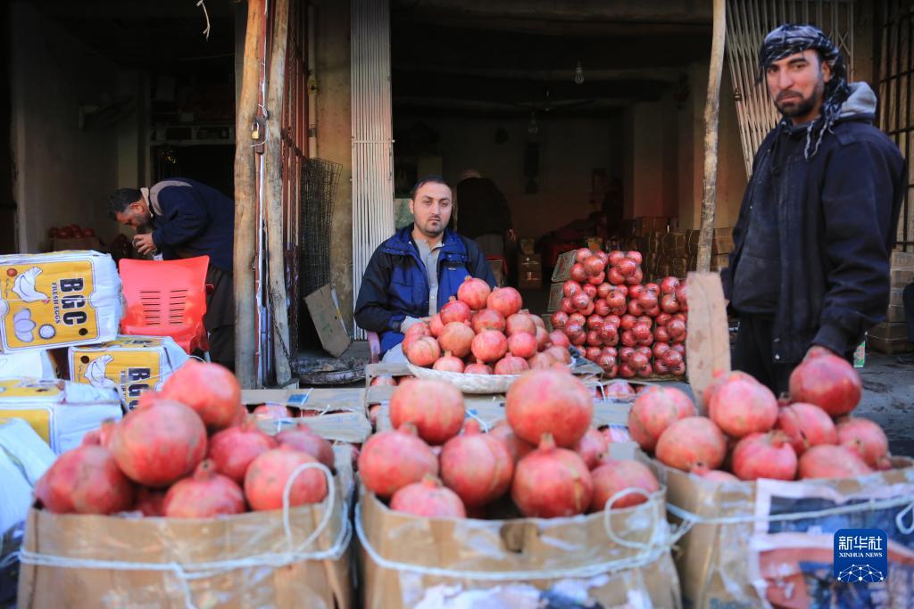 11月10日,在阿富汗首都喀布爾,一處攤位售賣(mài)產(chǎn)自阿富汗南部坎大哈省的石榴。