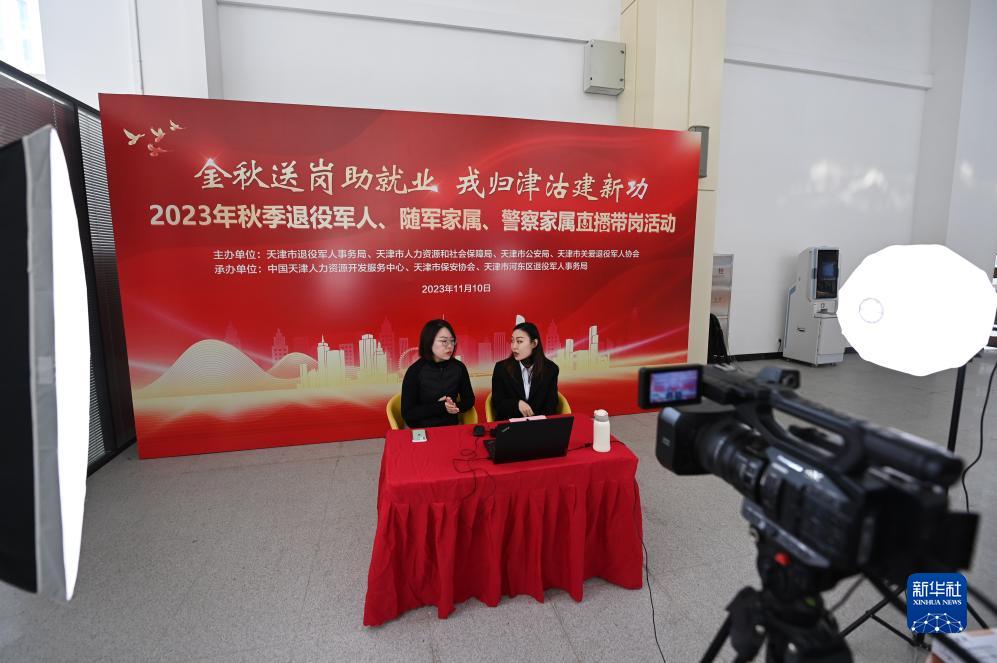 11月10日,工作人員在招聘會(huì )現場(chǎng)進(jìn)行直播帶崗。