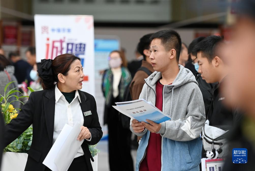 11月10日,求職者在招聘會(huì )現場(chǎng)與用人單位交流。