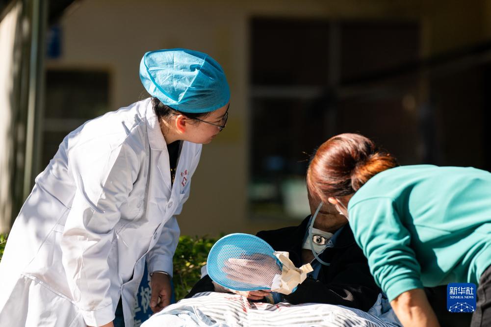 在畹町仁慈醫院,醫務(wù)人員在照顧一名住院的老人(10月29日攝)。