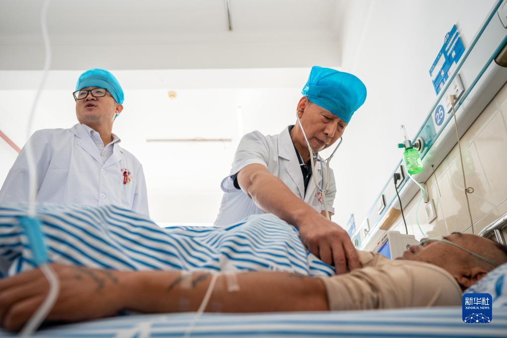 在畹町仁慈醫院,沈坤(右)在查看一名剛入院病人的身體情況(10月29日攝)。