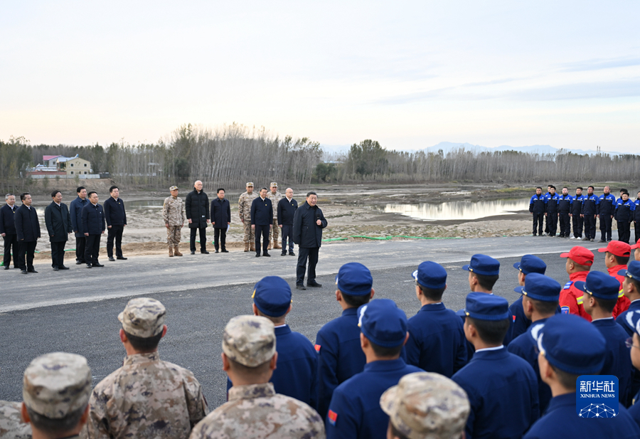 11月10日,中共中央總書(shū)記、國家主席、中央軍委主席習近平在北京、河北考察災后恢復重建工作。這是10日下午,習近平在河北保定涿州市白溝河治理工程(涿州段)考察時(shí),同水利工程建設人員和曾經(jīng)參加涿州抗洪救援的解放軍和武警部隊官兵、民兵預備役人員、消防救援隊伍等方面的代表親切交流。