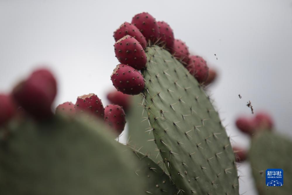 這是在墨西哥墨西哥州特奧蒂瓦坎拍攝的仙人掌果(8月3日攝)。
