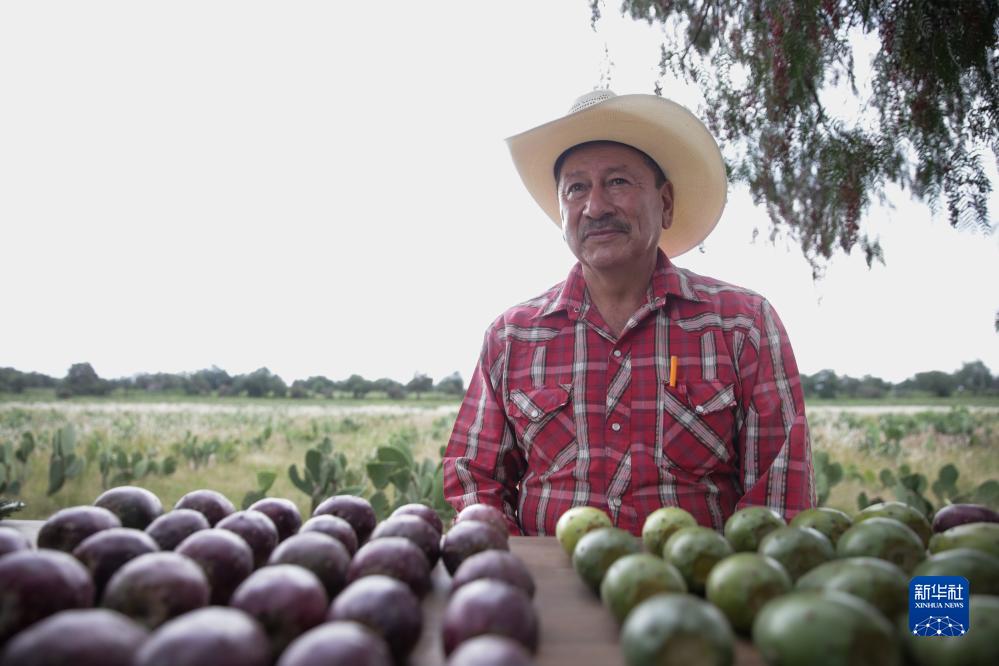 在墨西哥墨西哥州特奧蒂瓦坎,一名農業(yè)專(zhuān)家展示不同顏色的仙人掌果(8月3日攝)。