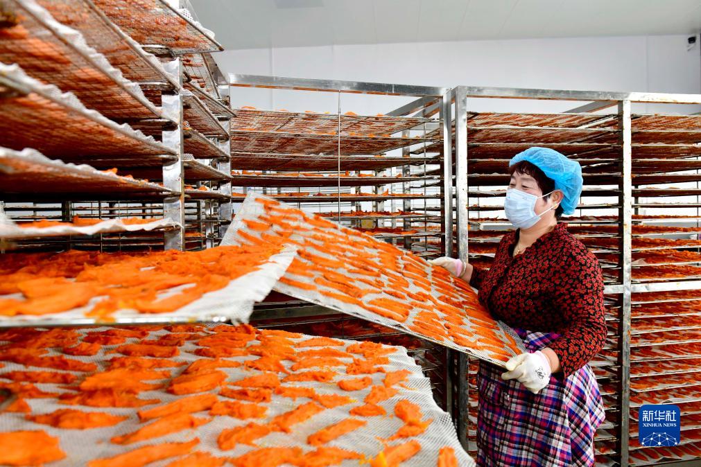 11月11日,在五蓮縣潮河鎮魏家薯干專(zhuān)業(yè)合作社,工作人員在加工薯干。