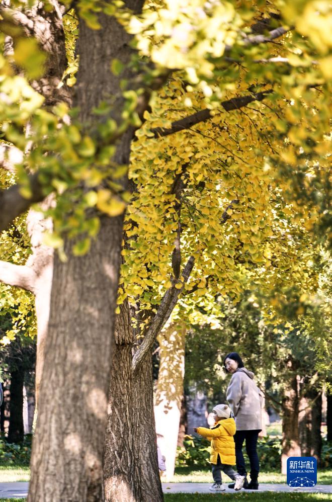 11月11日,游人在天壇公園內休閑游覽。