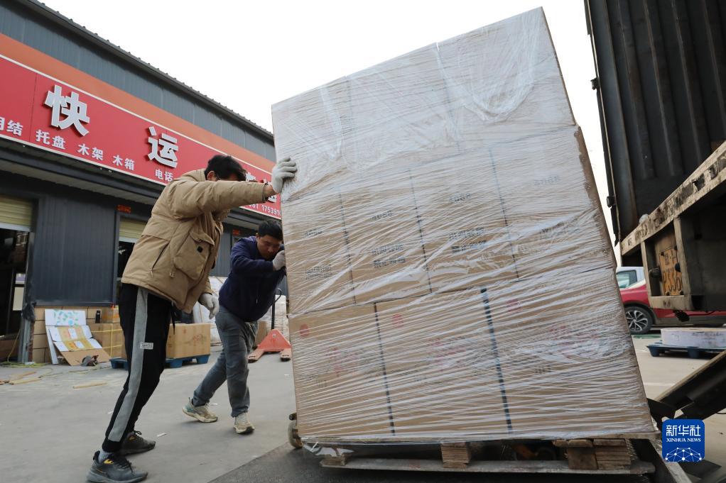 11月11日,河南省焦作市溫縣一家快遞公司員工將快遞裝車(chē)外運。