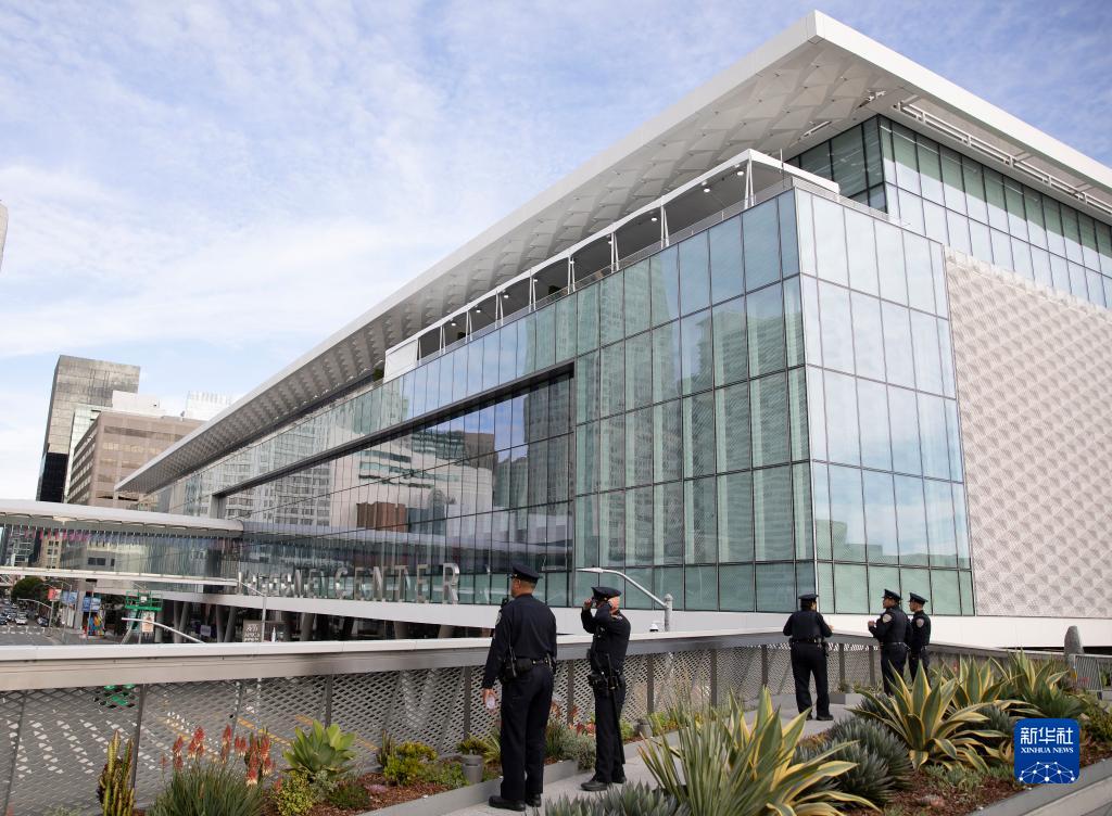 11月10日,警察在美國舊金山亞太經(jīng)合組織會(huì )議場(chǎng)地外執勤。