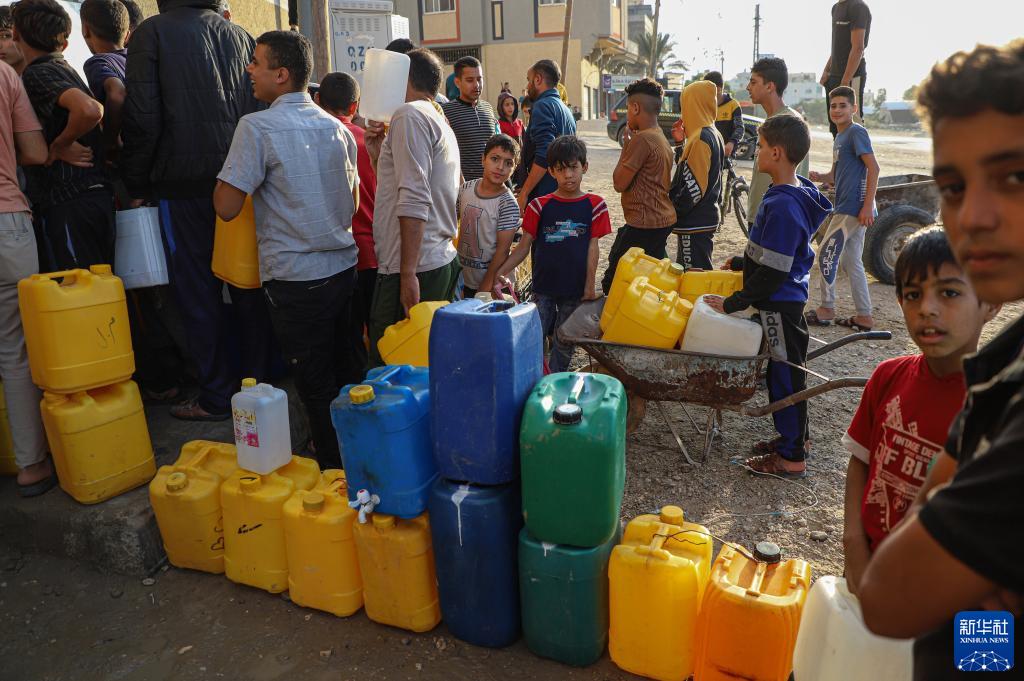 11月11日,人們在加沙地帶南部城市汗尤尼斯排隊打水。