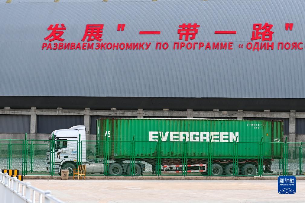 在新疆伊爾克什坦口岸,一輛貨車(chē)行駛在入境通道(11月7日攝)。