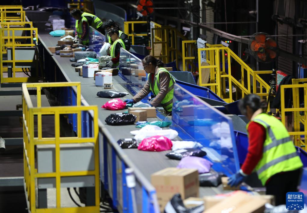 11月12日,工作人員在中國郵政集團有限公司衡陽(yáng)郵區中心局郵件處理中心分揀快遞包裹。