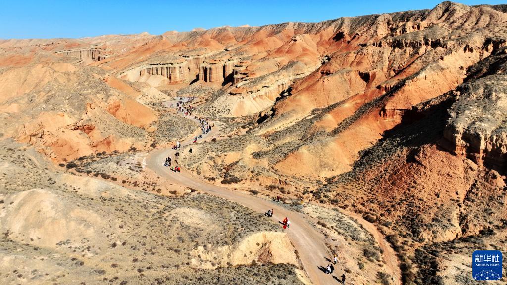 11月11日,人們在張掖外星谷星際主題地質(zhì)公園參加徒步活動(dòng)(無(wú)人機照片)。