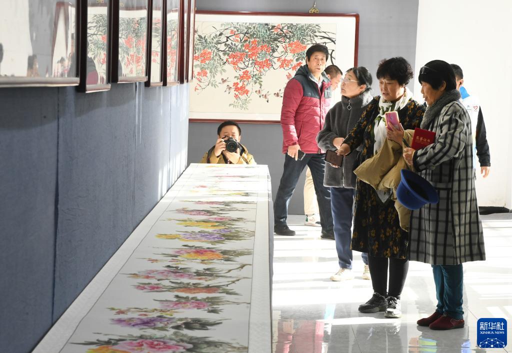 11月12日,觀(guān)眾參觀(guān)第十一屆“大美平谷·水墨周莊”書(shū)畫(huà)展。